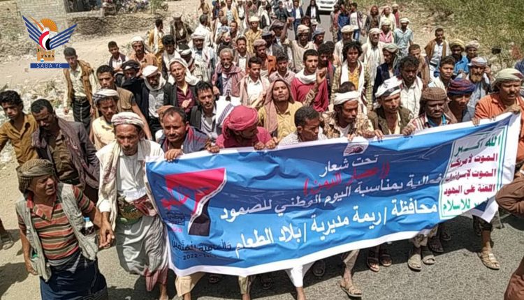 نظم أبناء مديرية بلاد الطعام بمحافظة ريمة ،اليوم مسيرة حاشدة بمناسبة اليوم الوطني للصمود في وجه العدوان .