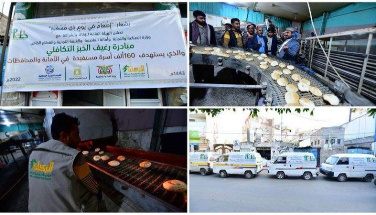 بدوره، أشار رئيس الهيئة العامة للزكاة الشيخ شمسان أبو نشطان، إلى أن مبادرة رغيف الخبز التكافلي تستهدف 160 ألف أسرة بأمانة العاصمة والمحافظات ضمن برنامج إطعام في يوم ذي مسغبة لتخفيف المعاناة عن الأسر الفقيرة.