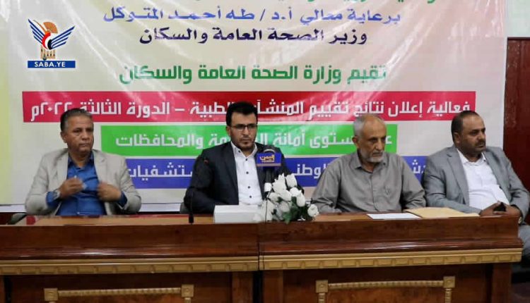 وجدد وزير الصحة التأكيد أن نتائج التقييم والتصنيف للمنشآت الطبية الخاصة ليست للتشهير وإنما للارتقاء بالخدمات الطبية وخلق تنافس بين المستشفيات لتقديم خدمات أفضل للمواطنين خاصة في ظل الظروف الصعبة التي يمر بها اليمن جراء استمرار العدوان والحصار ومنع دخول الدواء والتجهيزات الطبية .