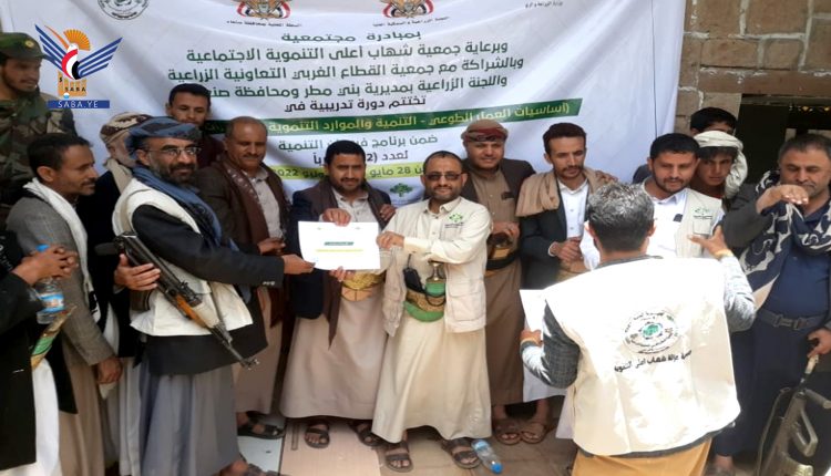 مؤسسة بنيان تختتم دورة تدريبية لـ 42 من فرسان التنمية في بني مطر بصنعاء