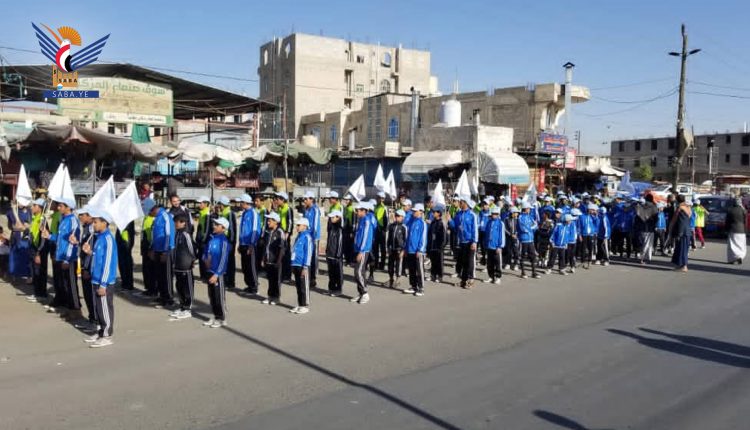 انطلقت المسيرة التي شارك فيها الطلاب الملتحقين بمراكز الشهيد القائد والذكر الحكيم والامام الحسين، عبر مجموعتين من جولة دار سلم وحزيز حتى شارع الثلاثين بصنعاء، وتم خلالها عروض رياضية وكشفية.