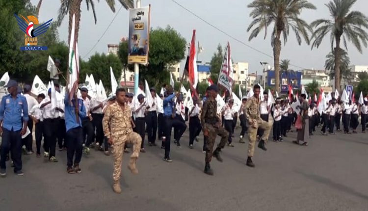 الصمود | نظمت اللجنة التنفيذية للدورات الصيفية في محافظة الحديدة اليوم، مسيرات شبابية وعروض كشفية لطلاب المدارس الصيفية في المدينة.