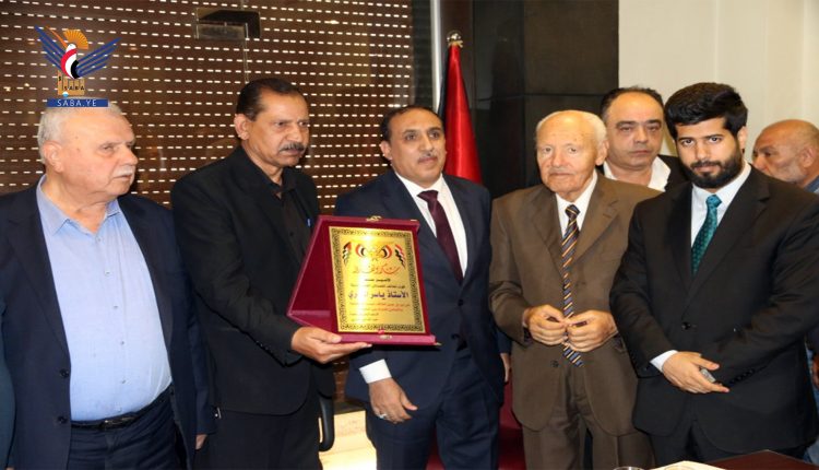 حضر حفل التكريم الوزير المفوض بسفارة اليمن في سوريا رضوان الحيمي ونخبة من السياسيين والمثقفين العرب
