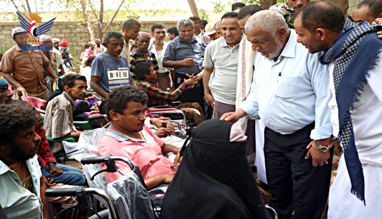 وأشار بن ضبيع إلى أهمية تقديم مثل هذه المساعدات الإنسانية العاجلة وكذا تلبية احتياجات ذوي الاحتياجات الخاصة في مناطق ومديريات وقرى المحافظة بالساحل الغربي، خاصة مع تفاقم الأوضاع المعيشة نتيجة استمرار العدوان والحصار منذ ثمان سنوات، موكداً على أن الجميع معني بتنفيذ دعوات السيد القائد يحفظه الله في التخفيف من معاناة المعاقين والأسر الفقيرة.