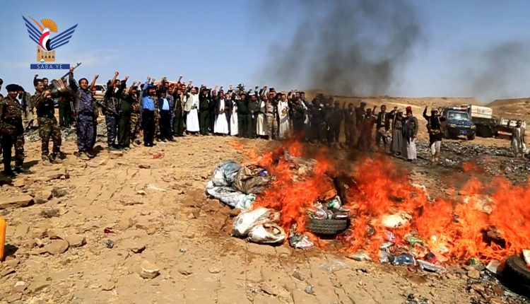 بمناسبة اليوم العالمي لمكافحة المخدرات.. اتلاف أكثر من 8 أطنان من مادة الحشيش والمواد المخدرة بصعدة