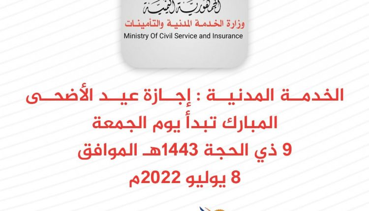 وزارة الخدمة المدنية تُعلن موعد إجازة عيد الأضحى المبارك على أن يبدأ الدوام في هذا التاريخ (تفاصيل)