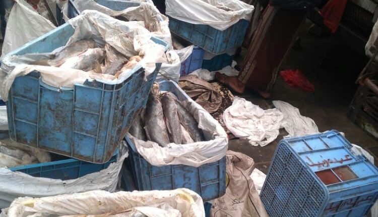 أتلف فريق التفتيش والرقابة الميداني التابع لقطاع خدمات الانتاج والتسويق اليوم قرابة نصف طن أسماك تالفة غير صالحة للاستخدام الآدمي تابعة لأحد التجار في سوق البليلي بالعاصمة صنعاء .