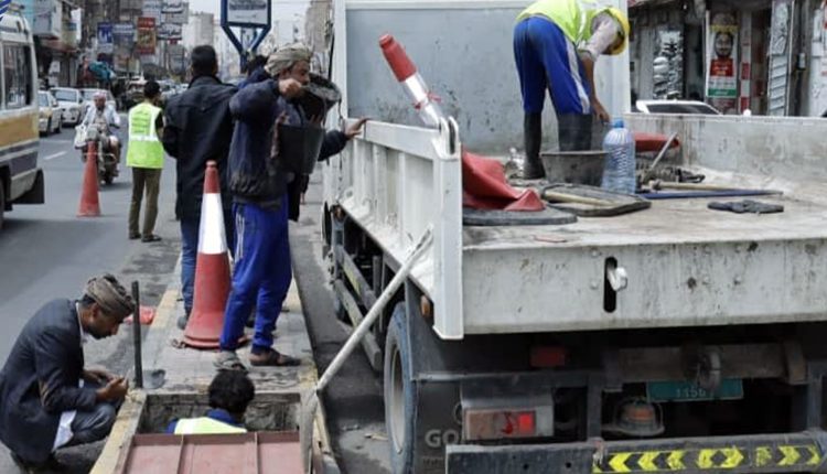 تنفيذ أعمال طارئة لفتح الطرق وتصريف مياه السيول في حزيز بصنعاء