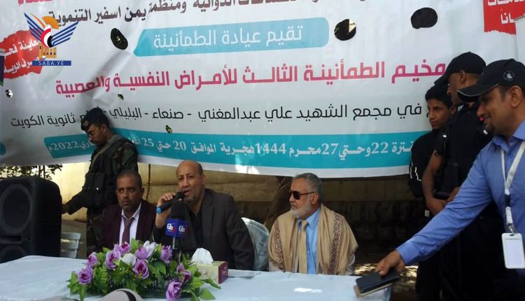دُشن بمجمع الشهيد علي عبد المغني الطبي بأمانة العاصمة اليوم، مخيم الطمأنينة الثالث المجاني للأمراض النفسية والعصبية.