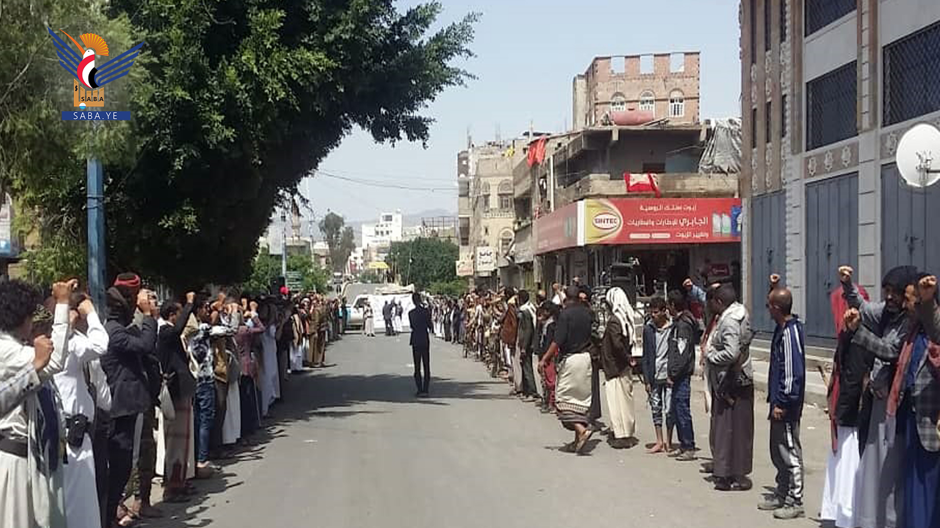 ودعا المشاركون في الوقفة بحضور قيادة وكادر المديرية ومدراء ومنتسبي المكاتب التنفيذية والمشايخ والعقال، الأمم المتحدة إلى اتخاذ موقف جاد لإيقاف العدوان ورفع الحصار عن اليمن وإنهاء معاناة اليمنيين وصرف مرتباتهم من إيرادات النفط والغاز المنهوبة من قبل تحالف العدوان وأدواته.
