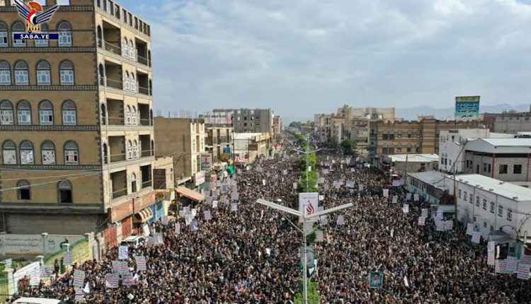 الصمود | تتوافد الحشود الجماهيرية إلى شارع المطار بالعاصمة صنعاء لإحياء ذكرى استشهاد الإمام زيد بن علي عليهما السلام.