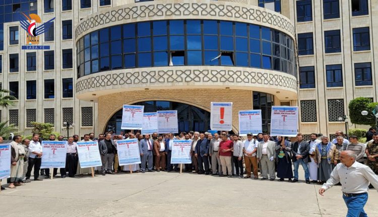 نظم موظفو شركة النفط اليمنية، اليوم، وقفة احتجاجية بصنعاء، تنديداً بأعمال القرصنة التي يمارسها تحالف العدوان بقيادة أمريكا على سفن المشتقات النفطية خاصة في ظل الهدنة المؤقتة.
