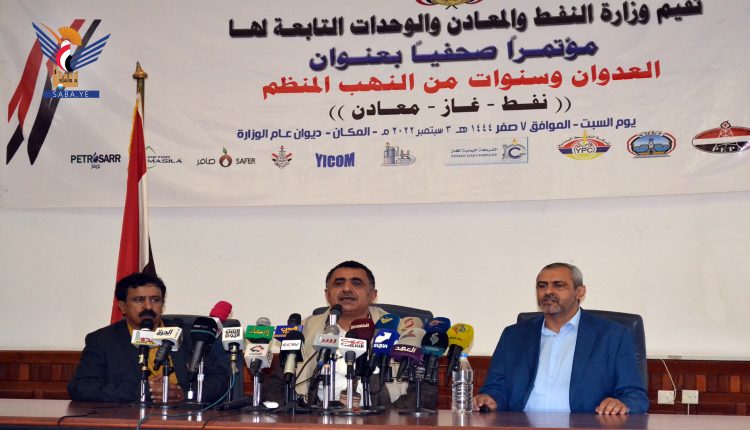 وفي مؤتمر صحفي نظمته الوزارة والوحدات التابعة لها، أمس بصنعاء، تحت عنوان “العدوان وسنوات من النهب المنظم نفط – غاز – معادن”، أكد وزير النفط والمعادن، أحمد عبدالله دارس، أن حجم النفط الخام المنهوب خلال الفترة منذ العام 2018 م إلى نهاية شهر يوليو 2022م بلغ نحو 130 مليوناً و41 ألفاً و500 برميل، فيما تبلغ قيمة عائداته تسعة مليارات و490 مليوناً و639 ألف دولار، حيث تم توريد هذا المبلغ إلى العديد من بنوك تحالف العدوان.