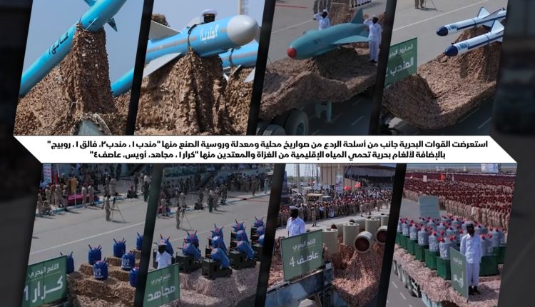 أظهر العرضُ العسكريُّ للمنطقة العسكرية الخامسة في محافظة الحديدة مؤخّراً جانباً من القدرات العسكرية الهائلة للقوات البحرية اليمنية، حَيثُ تم الكشف عن صواريخ لأول مرة تمثل إنجازاً يمانياً وتوازن ردع للغزاة الطامعين في احتلال سواحلنا وممراتنا المائية.