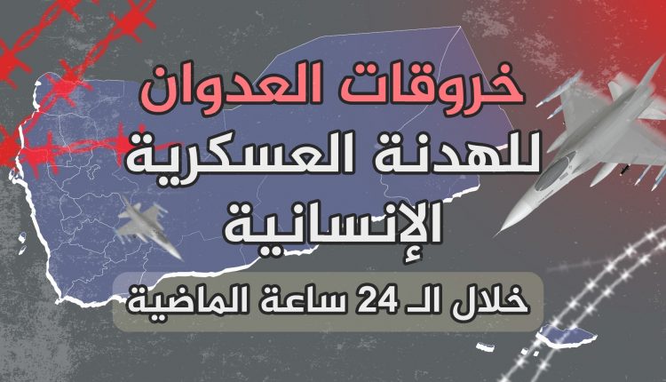 ارتكبت قوى العدوان ومرتزقتها 144 خرقاً للهدنة الإنسانية والعسكرية، خلال الـ 24 ساعة الماضية.