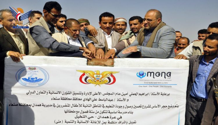 صنعاء.. وضع حجر أساس بناء مدرسة في عرة همدان بتكلفة 120 ألف دولار