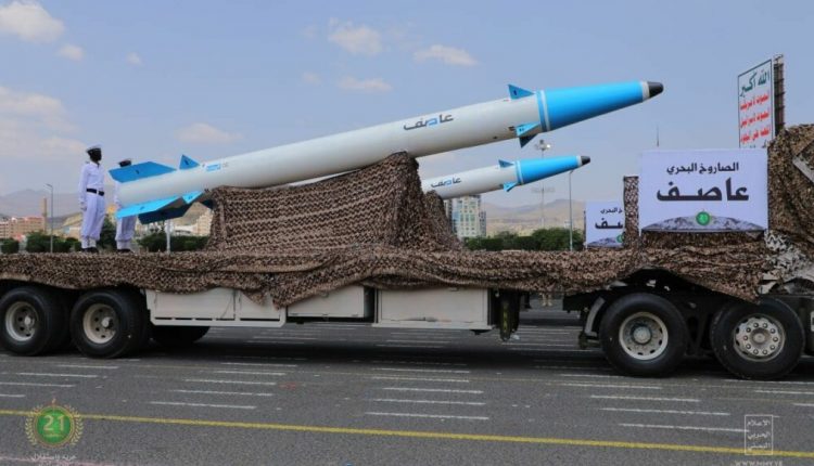 كشفت القوات المسلحة اليمنية عن صواريخ باليستية جديدة في عرضها العسكري بمناسبة العيد الثامن لثورة 21 سبتمبر في العاصمة صنعاء، ومن بين هذه الصواريخ الجديدة هو صاروخ “عاصف” الباليستي البحري.