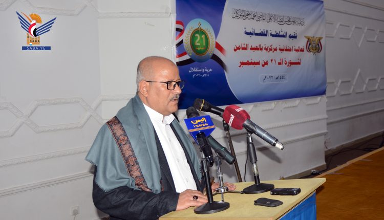 بدوره أوضح وزير العدل القاضي نبيل العزاني أن الاحتفال بالعيد الثامن لثورة 21سبتمبر يجسد واقعا مستقلا يتميز بالحرية والعزة والتحرر من الارتهان والتبعية للسياسة الأمريكية وأدواتها في المنطقة.
