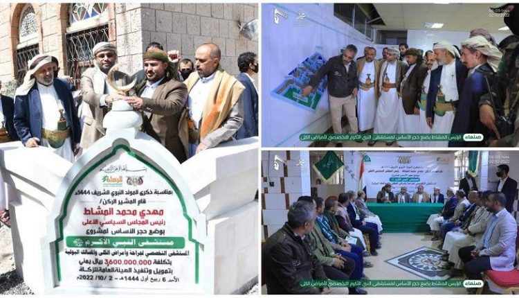 قام فخامة المشير الركن مهدي المشاط رئيس المجلس السياسي الأعلى اليوم بصنعاء بوضع حجر الأساس لمستشفى النبي الأكرم التخصصي لأمراض الكلى.