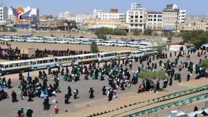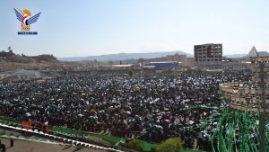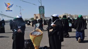 حيث امتلأ ملعب المدينة الرياضية ومحيطه بحرائر العاصمة صنعاء وريفها والمحافظات المجاورة، وعملت لجان الاستقبال والتنظيم على انسيابية الحركة وتسهيل الوصول إلى داخل الساحة، في أجواء روحانية مفعمة باللونين الأخضر والأبيض والروائح الزكية والأناشيد الدينية والمدائح النبوية، والصلاة على الرسول الأعظم صلوات الله وسلامه عليه وعلى آله.