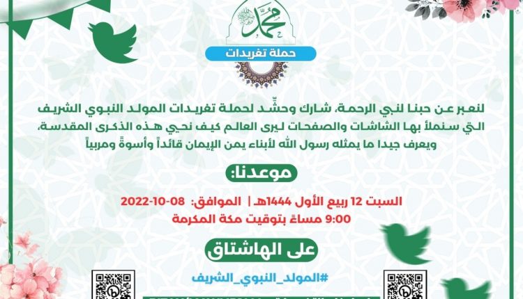 تنطلق الساعة التاسعة من مساء اليوم، حملة تغريدات المولد النبوي الشريف على موقع التواصل الاجتماعي “تويتر”.