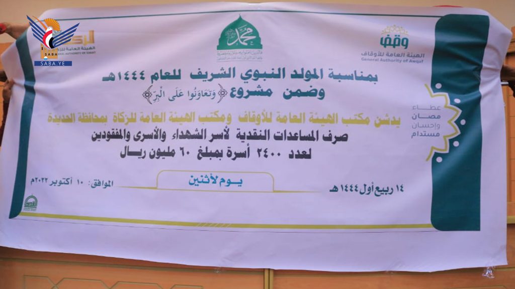 دشن مكتبا هيئتي الأوقاف والزكاة بمحافظة الحديدة اليوم مشروع صرف المساعدات النقدية لأسر الشهداء والأسرى والمفقودين، ضمن مشروع “وتعاونوا على البر”.