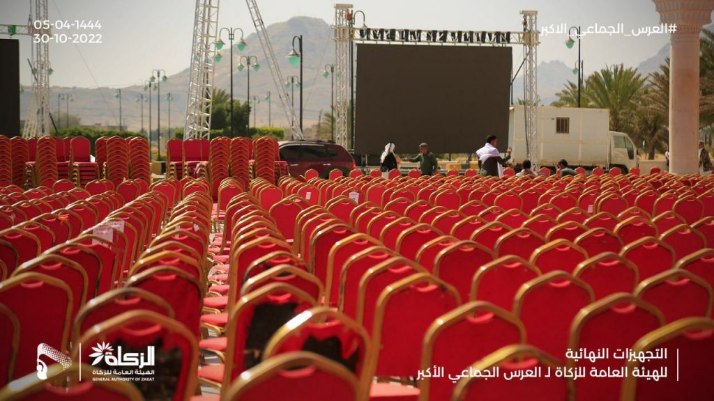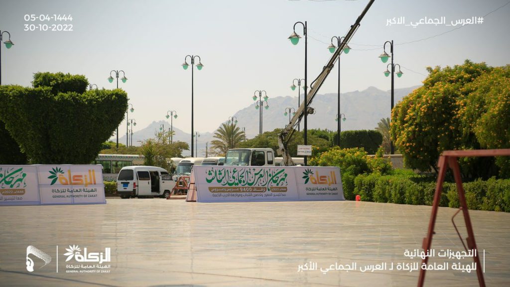 فيما أوضح وكيل الهيئة السقاف، أن التحضيرات والتجهيزات في ساحة العرس الجماعي شارفت على الانتهاء لتكتمل اللوحة الوطنية للعرس الأكبر الذي يستهدف أكثر من 10 آلاف عريس وعروس.