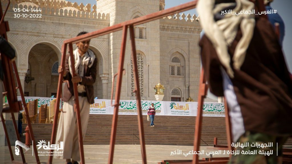 اطلع فخامة المشير الركن مهدي المشاط رئيس المجلس السياسي الأعلى اليوم، على التجهيزات والترتيبات النهائية في ساحة الاحتفال بالعرس الجماعي الثالث بالعاصمة صنعاء، الذي تقيمه هيئة الزكاة غدا الاثنين لأكثر من 10 آلاف عريس وعروس.