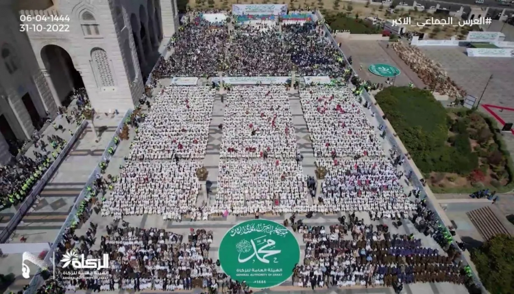 شهدت العاصمة صنعاء اليوم الإثنين العرس الجماعي الثالث والأكبر في تاريخ اليمن والمنطقة والعالم، نظّمته الهيئة العامة للزكاة، لعشرة آلاف و44 عريساً وعروساً.