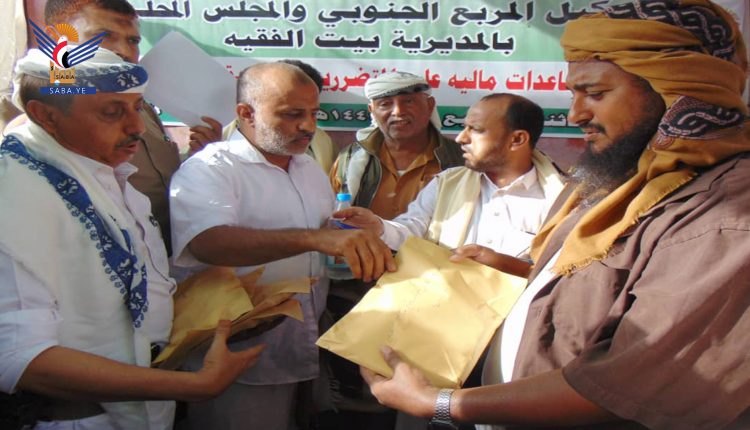 حضر التوزيع نائب مدير مكتب الهيئة بالمحافظة محمد الوسع وامين محلي المديرية عبدالله مهدي ومديرا المصارف أحمد مهدي وفرع الهيئة ببيت الفقيه محمد الفضلي.
