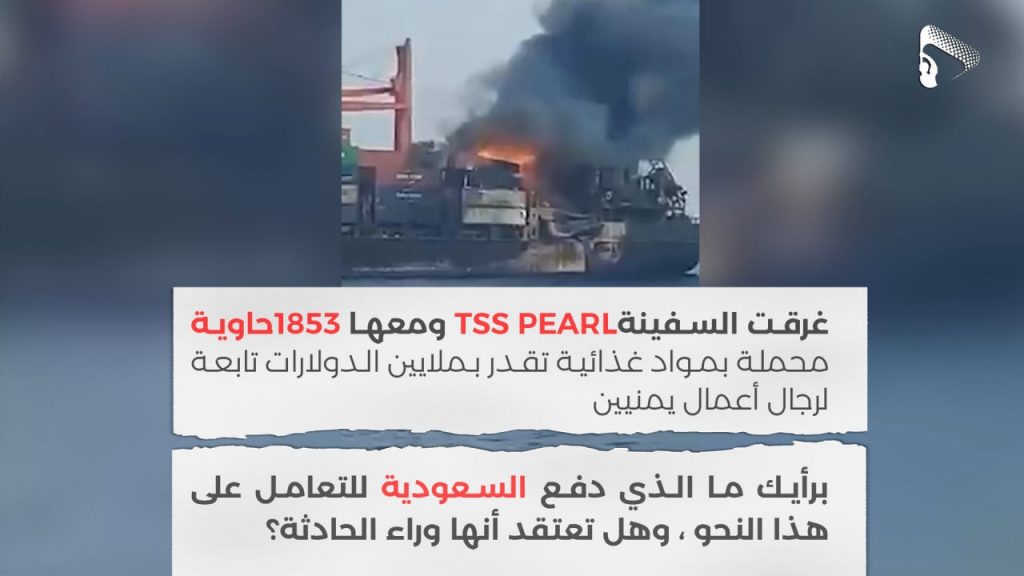 وأكد بيان صادر عن المؤتمر الصحفي تلاه نائب وزير النقل أن وزارتي النقل والصناعة والتجارة تتابعان الحادث الذي تعرضت له سفينة الحاوياتtss pearl التي ترفع علم بنما بعد مغادرتها ميناء جدة السعودي في تمام الساعة الثانية صباحا يوم الخامس من شهر أكتوبر الماضي.