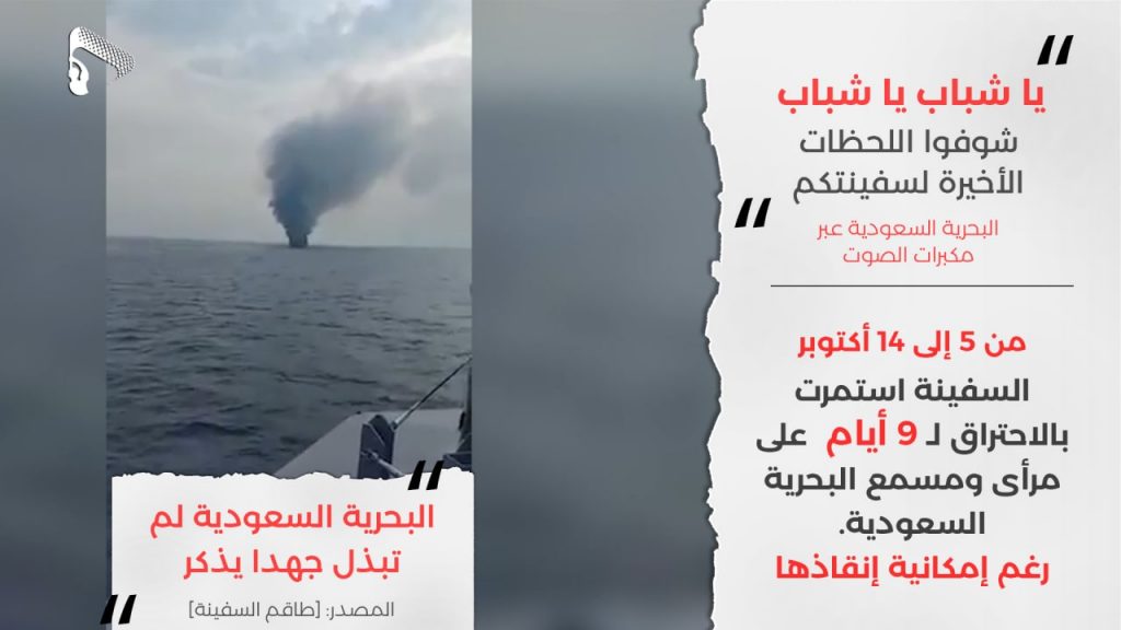 واستنكر البيان الإهمال المتعمد من قبل سلطات العدوان السعودي التي لم تقم بالتزاماتها الدولية كدولة ساحلية وقعت الحادثة في مياهها الإقليمية، في مخالفة لكل الأعراف البحرية والقوانين والاتفاقيات الدولية.