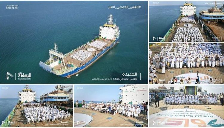 شاهد: من على متن سفينة (روابي) الإماراتية.. الحديدة تحتفي بزفاف 572 عريساً وعروس “فيديو+صور”