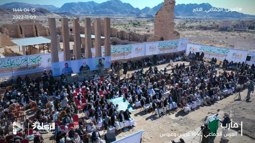 بدوره أوضح وكيل هيئة الزكاة علي السقاف، أن العرس الجماعي يأتي في إطار المشاريع التي تنفذها الهيئة والتي تستهدف الفقراء والمحتاجين.