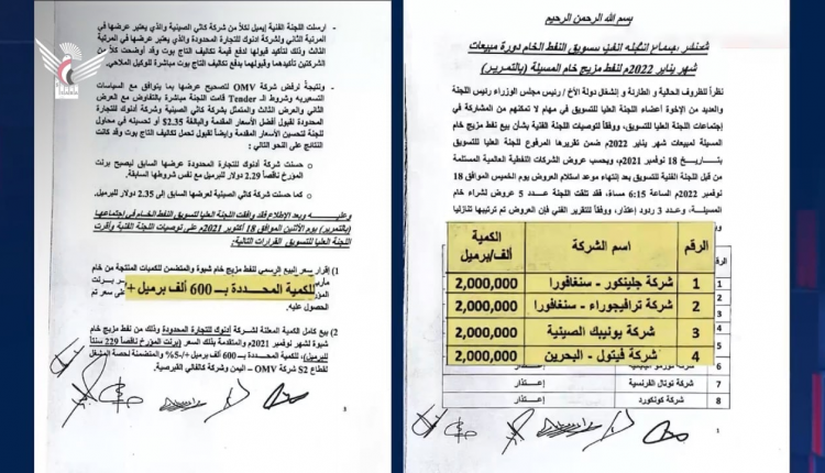 وتضمنت الوثائق، محاضر ومناقصات لبيع النفط الخام المنهوب من حقول المسيلة وشبوة ومأرب لعدد من الشركات الأجنبية، عبر ما تسمى “اللجنة العليا لتسويق النفط الخام” التابعة للمرتزقة.
