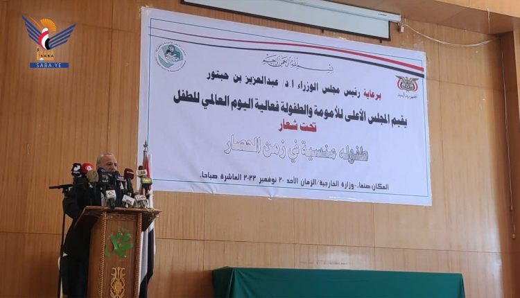 وقال” نعتبر إحياء اليوم العالمي للطفل فرصة، لنكشف للعالم زيف الادعاءات، في ظل ما يتعرض له على مدى ثمان سنوات من العدوان والحصار أطفال ونساء اليمن من جرائم وانتهاكات، تسببت في قتل وإصابة وإعاقة الآلاف منهم”.