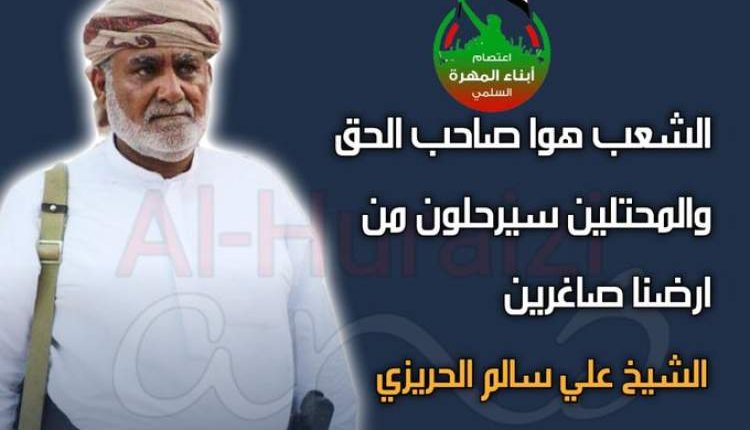 شن رئيس لجنة الاعتصام بمحافظة المهرة الشيح علي سالم الحريزي هجوما لاذعا على دولتي العدوان السعودية والامارات وجرائمهم بحق اليمنيين ومن ثم اعلانهم تقديم ودائع.