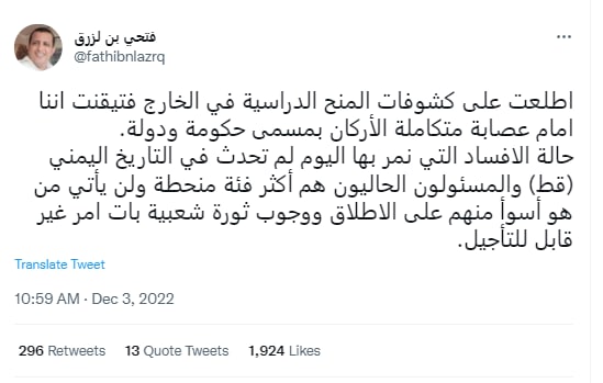 أثارت كشوفات نشرها ناشطون في مواقع التواصل الإجتماعي عن سيطرة قيادات المرتزقة والمسؤولين في ما يسمى مجلس الرئاسة لمرتزقة العدوان على المنح الدراسية في وزارة التعليم العالي بحكومة المرتزقة واستلام مبالغ مالية باهضة شهريا غضب شعبي واسع في أوساط اليمنيين.
