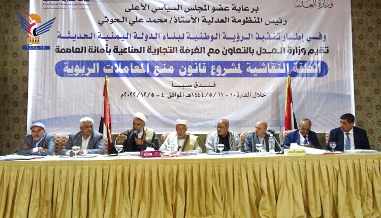 بدأت بصنعاء يوم الأحد حلقة نقاشية حول مشروع قانون منع المعاملات الربوية، تنظمها على مدى يومين وزارة العدل والغرفة التجارية الصناعية بأمانة العاصمة.