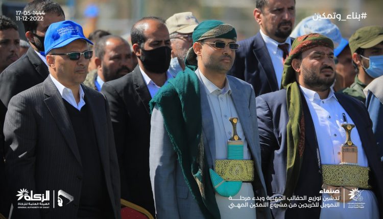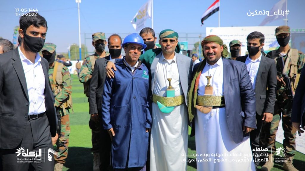 وجاء تدشين توزيع الحقائب المهنية من قبل الهيئة العامة للزكاة في إطار مشروع التمكين الاقتصادي، الذي يستهدف في مرحلته الأولى 500 شاب، في 20 برنامجاً مهنياً وفنياً بأمانة العاصمة بالتزامن مع الذكرى السنوية للشهيد تحت شعار ” يد تحمي .. ويد تبني”.