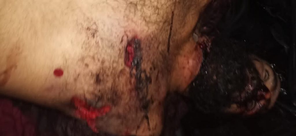 وقال عادل الحسني في تغريدة له على تويتر:”صور للجندي ماجد رشده الذي عذبه المدعو مختار النوبي التابع للانتقالي الاماراتي وذبحه بسكين ورماه على قارعة الطريق” .