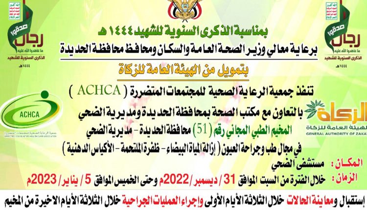ورد الآن: جمعية الرعاية الصحية تزف بشرى سارة في المجال الإنساني للتخفيف من أعباء المواطنين بالحديدة.. وهذا ما سيحدث ابتداء من يوم السبت ولمدة 6 أيام “تفاصيل”
