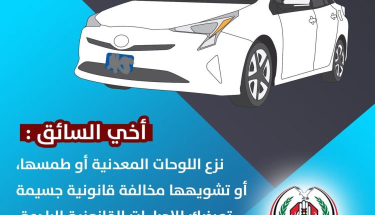 كما أكد أن نزع اللوحات المعدنية أو طمسها أو تشويهها تعد مخالفة قانونية جسيمة تعرض السائق للإجراءات القانونية الرادعة.