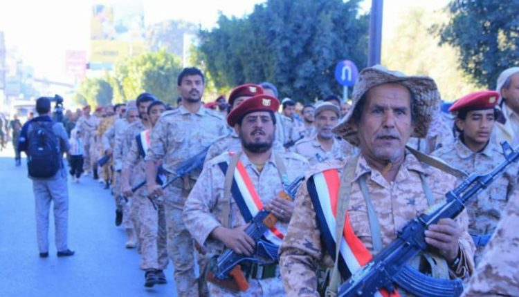 ونددوا باستمرار أعمال القرصنة البحرية واحتجاز سفن المشتقات النفطية من قبل تحالف العدوان مما يضاعف من حالة المعاناة الإنسانية للشعب اليمني وعقب العرض العسكري أدى المشاركون فيه قسم الولاء.