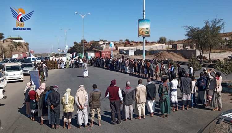 وخلال الوقفة التي حضرها قيادات محلية وأمنية ووجهاء ومشايخ، استنكر المشاركون الصمت الدولي والأممي تجاه استمرار تحالف العدوان في فرض الحصار وتضييق الخناق على اليمنيين لمضاعفة معاناتهم.