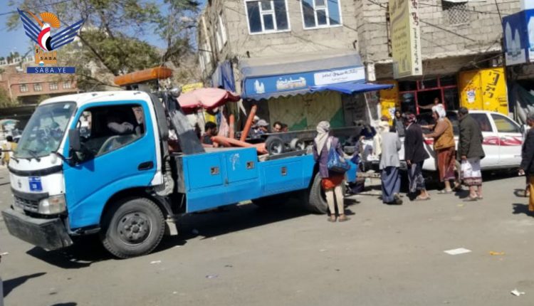 رفع المخالفات ومسببات الإزدحام المروري في مديريتي معين والثورة بأمانة العاصمة صنعاء