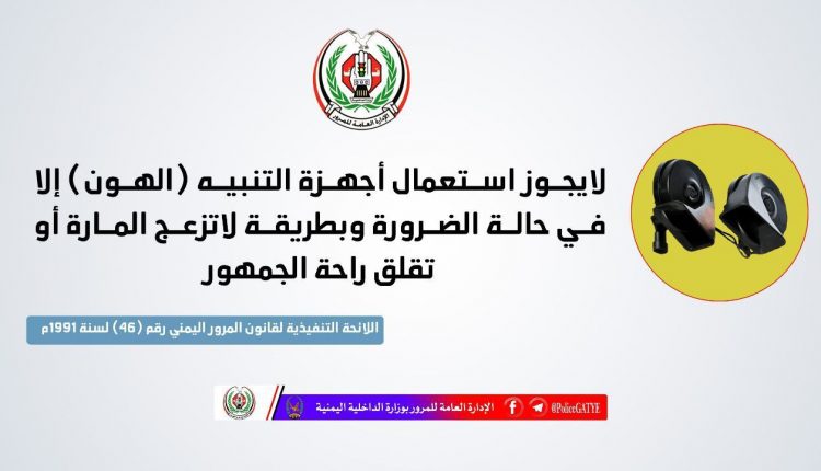 لا يجوز استعمال أجهزة التنبيه (الهـون) إلا في حالة الضرورة وبطريقة لا تزعج المارة أو تقلق راحة الجمهور