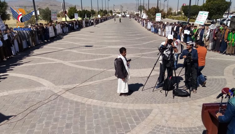 وأشاد الصعدي باحتشاد أبناء الشعب اليمني بأمانة العاصمة والمحافظات لنصرة كتاب الله عز وجل وغيرتهم على المقدسات الإسلامية .. وقال “نخرج لنقول للعالم أن أغلا قيمنا هي كتاب الله وأننا لن نسكت عن المساس به أو تدنيسه أو إحراقه”.