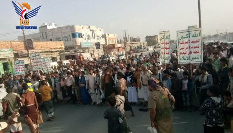 الصمود | نظمت بمديرية عبس محافظة حجة عصر اليوم مسيرة حاشدة تنديدا بإحراق نسخة من القرآن الكريم من قبل متطرفين في السويد تحت شعار ” غضب شعب الإيمان ضد من احرقو القرآن”.