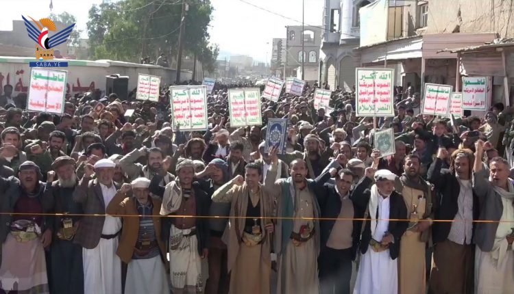 شهدت مدينة رداع بمحافظة البيضاء، الأربعاء، مسيرة جماهيرية استنكارا ورفضا لجريمة إحراق نسخة من القرآن الكريم من قبل متطرفين في السويد.